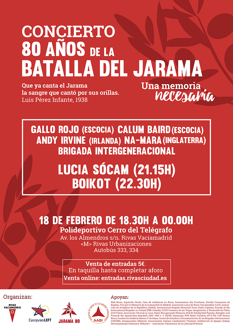 Organizadores: Jarama 80, Asociación de Amigos de las Brigadas Internacionales y Partido de la Izquierda Europea.