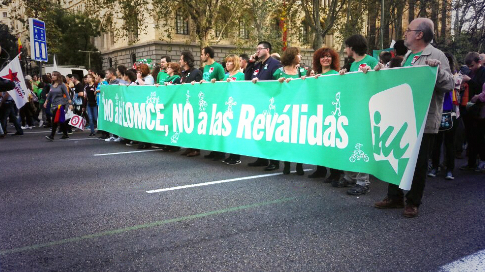Las políticas educativas del PP, con la ley Wert y los recortes en educación, siguen manteniendo en frente y en pié a toda la comunidad educativa, profesores, padres y estudiantes. Hoy, coincidiendo con la anunciada investidura de Rajoy y mientras éste hacía referencia a «un pacto por la educación», miles de compañeras se manifestaban en Madrid en una columna encabezada por Izquierda Unida e IUMadrid. La manifestación se convocaba a las 18:00 con recorrido Cibeles – Sevilla, poniendo colofón a una jornada de huelga general educativa que mostraba la gran fuerza del poder popular.