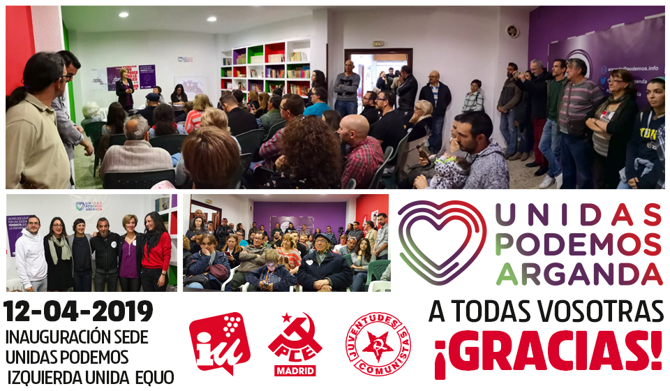 El pasado viernes 12 de abril celebramos un acto inaugural de nuestra sede de Unidas Podemos Arganda coincidiendo con la presentación de campaña para las elecciones generales del 28 de abril.